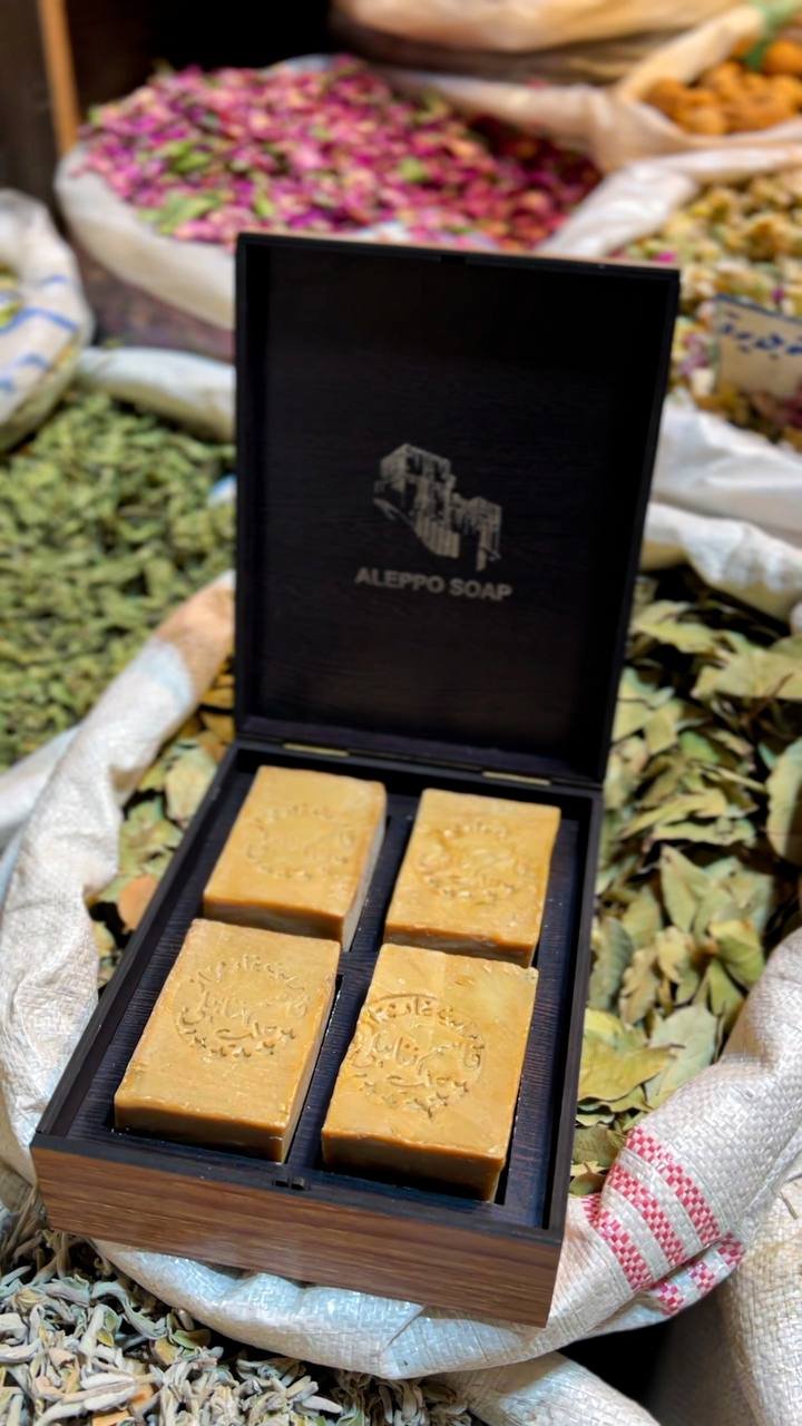 الصابون الحلبي الأصيل المصنوع من زيت الزيتون وزيت الغار بنسب تقليدية